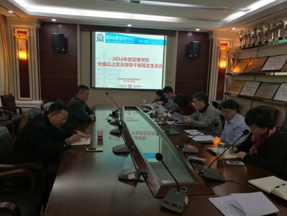 管理学院党委书记陶玉顺同志就其履行党建责任向与会人员做述职报告,主要从思想建设、组织建设、队伍建设、制度建设、反腐倡廉建设等五个方面阐述2016年管理学院党建工作,并提出下一步党建目标是:进一步加强学习,认真学习贯彻习近平同志在中央政治局民主生活会的讲话精神:要当“政治上的明白人”,以党的基本路线为根本遵循,对党忠诚必须纯粹,继续坚持民主集中制,做到敬畏,遵守纪律和规矩,带头崇尚实干,抓落实,提高廉洁纪律意识,自觉诚恳接受监督,为学校和学院工作做出贡献。