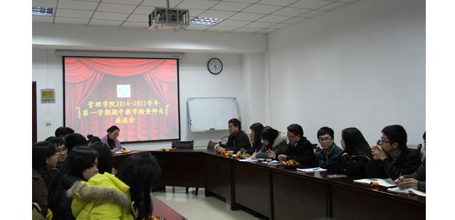 11月19日下午4:30,在我院MBA中心二楼会议室召开期中教学检查座谈会,学院党委书记陶玉顺、院长李烨、副院长王婷、院党委副书记于松出席会议,由分管院长王婷教授主持会议,2012级、2013级共十九个班委代表,系主任和院教学科科长参加会议。