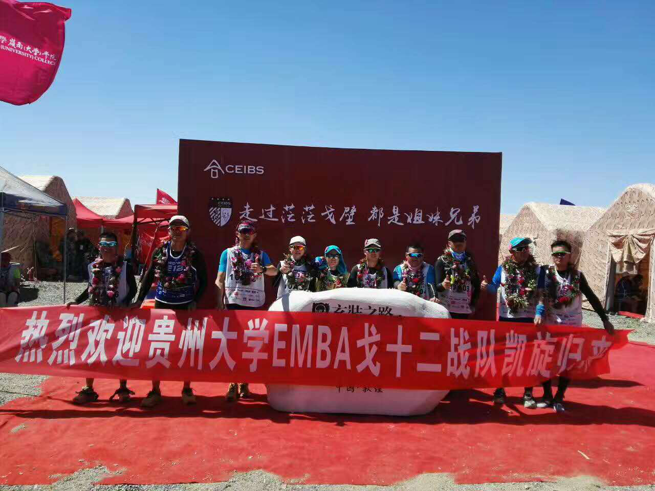 乐动官方网站EMBA战队作为此次代表贵州大学的参赛学院,在赛程的四天三夜里完成了117公里的徒步,挑战自我,突破了不论是心理还是生理上的极限。贵州大学戈十二战队的口号“戈壁险途 贵大征服 一起出发 一起到达”,体现出贵州大学校友们的不惧艰辛、团结合作的精神。