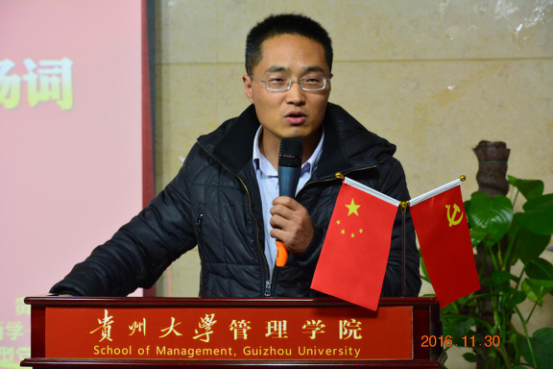2016年11月30日下午14:30,由贵州大学党委研究生工作部主办,管理学院、机械工程学院、生命科学学院共同承办的“两学一做我先行”系列活动“党员人人上党课”微型党课评选决赛在管理学院302报告厅举行。管理学院陶玉顺书记校党委组织部、党校常务副校长李昕昌副部长校党委研究生工作部张小彬副部长机械工程学院党委代祥社副书记、生命科学学院党委令狐莹副书记、管理学院党委张亚军副书记等领导及通联站、艺术团和各学院研究生代表出席此次比赛。