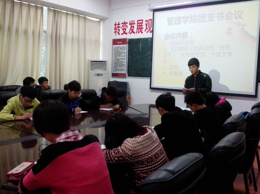 2013年3月15日中午13:00,本学期管理学院第二次团支书会议在管院三楼会议室组织召开。此次会议旨在向各班团支书们传达加强基层团组织建设的思想以及近期的各项工作安排。