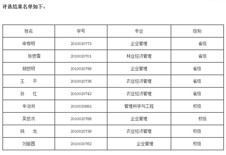 管理学院2013年硕士研究生省级、校级优秀毕业研究生评选结果名单公示