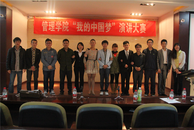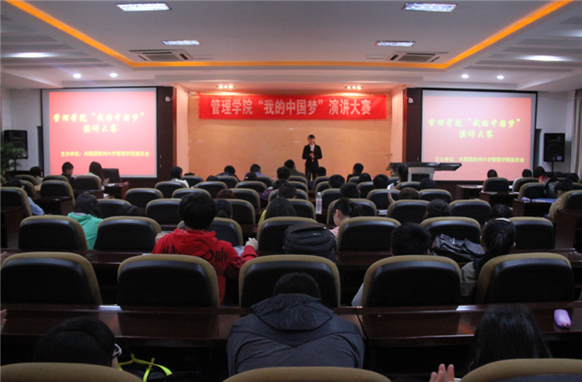 为了响应共青团贵州省委的号召,深入贯彻落实党的十八大精神和习近平总书记关于“中国梦”的一系列重要讲话精神,5月3日晚7点,主题为“我的中国梦”的团日演讲比赛在管理学院三楼报告厅举行。本次活动到场的评委有管院团委副书记周永,学生会主席王江峰,三位特邀嘉宾于宝龙、王立森、杜国强,以及团委各部门部长。