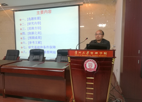 学院学科建设&科研管理办主任申鹏教授以“国家社科基金申请漫谈”为题,向大会介绍了其申报国家社科基金项目的经验。申鹏教授以国家社科基金申报书为样本,从选题依据、研究内容、思路方法、创新之处、预期成果、参考文献、研究基础和条件保障、其他事项与推荐网站等方面详细、深入地介绍了国家社科基金项目的申请经验,为学院教师,特别是青年教师申报国家社科基金项目提供了宝贵的经验。李烨院长建议学院拟申报2018年国家社科基金项目的老师,会后积极与申鹏教授沟通,向申鹏教授取经学习。