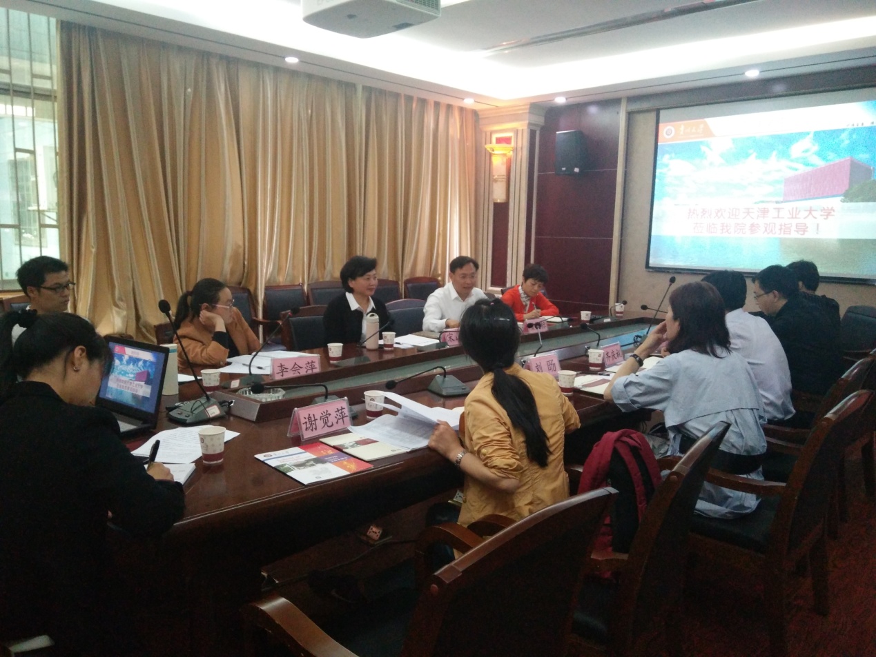 2018年4月20日下午14:30,天津工业大学管理学院副院长齐庆祝教授、财务管理与会计系党支部书记付景莉副教授、管理科学与工程系主任邓华副教授、人力资源与创业系党支部书记谢觉萍博士、教学办主任刘旸副教授一行到访我院,与我院就本科培养方案制定、本科教学经验、实验教学体系的构建、教学管理的各项规章制度等进行交流。副院长宋山梅教授、工商管理系主任项凯标教授、党政办公室主任徐兰、创新创业教育中心副主任刘遗志副教授、会计系张晓美副教授、管理科学与工程系副主任陈刚老师、对外合作部负责人王云、教学科阮一灵等出席座谈会。