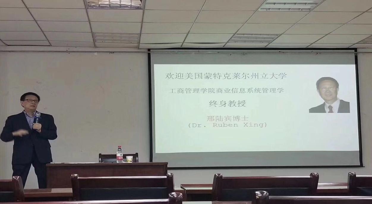 为了进一步提升管理学院MBA教育教学质量,促进对外交流,我院特邀到美国蒙特克莱尔州立大学工商管理学院商业信息系统管理学终身教授邢陆宾博士为我院2017级MBA同学授课。邢教授具有丰富的教育背景与工作经历,1989-92毕业于美国纽约哥伦比亚大学获国际信息开发及管理学博士学位(PhD),1986~89获美国纽约哥伦比亚大学计算机科学,数学及科学教育双硕士学位(MS/MA) ;现任美国蒙特克莱尔州立大学工商管理学院商业信息系统管理学终身教授,美国纽约华尔街企业家信息战略发展论坛特邀专题演讲人,中国国家教育部聘任“海外名师”学者,受聘为国内高校讲课及合作相关科研项目,现任贵州大学经济管理学院特聘教授,现任美国国家知识产权组织特邀顾问;北美国际高等教育中心副总裁,前任美国华尔街花旗集团前副总裁,前美林公司总裁助理,美国-瑞士信贷银行系统部经理,曾任中国昆仑保险公司特邀信息总监,高级顾问。目前,邢教授在“当代商业信息系统战略分析与资源管理” 方面具有深厚的理论造诣。