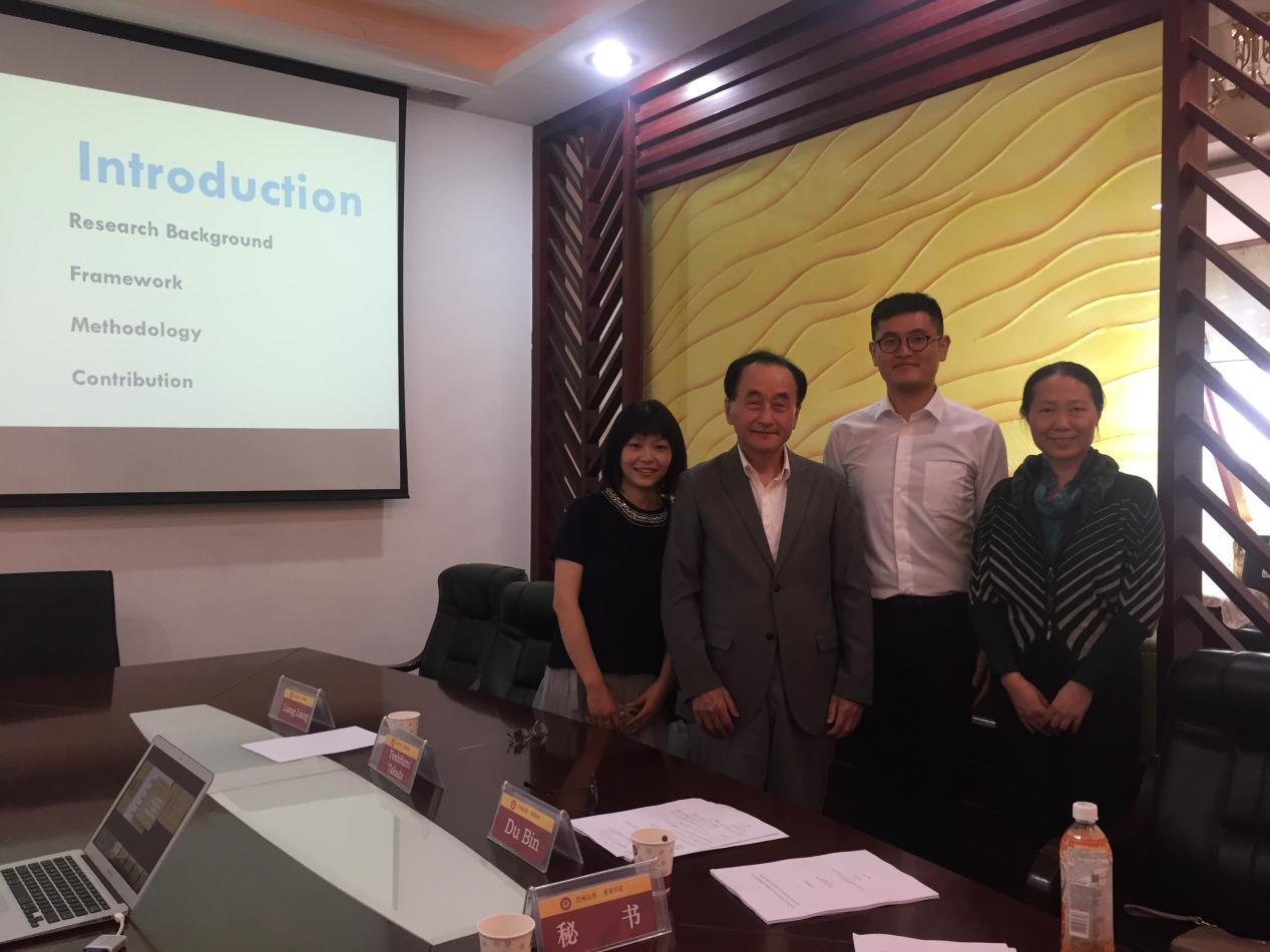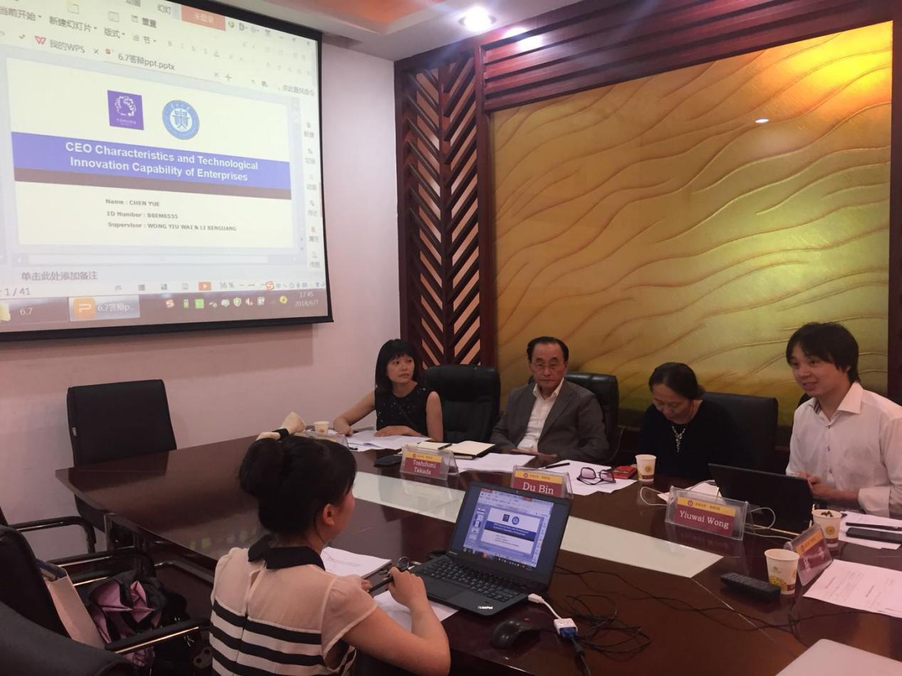 管理学院于6月7日下午、8号上午,在管理学院致远楼301室举行了2015级学术型研究生双学位答辩会,本次共有2名参加东北大学(日本)国际交流项目的同学提交双学位申请,分为两组参加了本次答辩。贵州大学研究生院常务副院长、管理学院教授杜滨(Du Bin)担任本次答辩组长,日本东北大学高田敏文(Toshifumi Takada)教授、黄耀伟(YiuWai Wong)博士、管理学院副教授梁亮(Liang Liang)担任本次答辩组成员,管理学院车婧娴老师担任秘书工作。