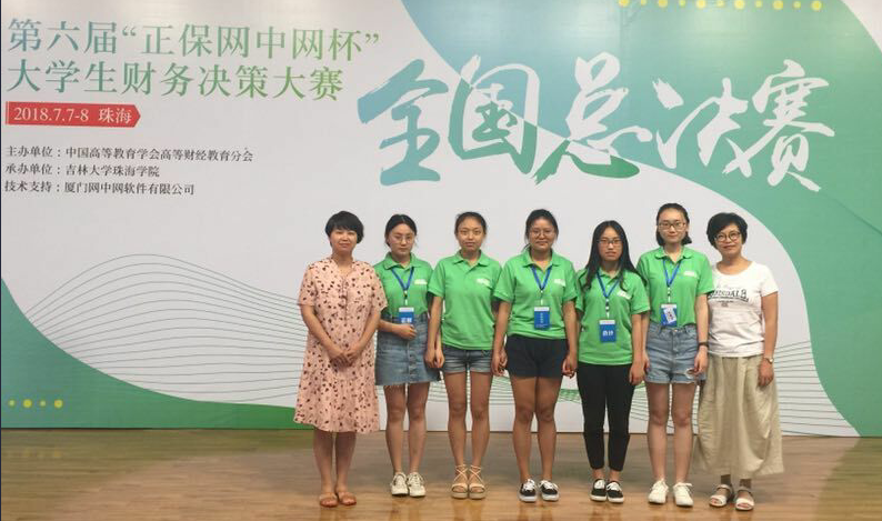 2018年6月9、10日,在我院李会萍老师、蔡兰老师的带领下,我院学子代表我校参加了由中国高等教育学会高等财经教育分会主办,厦门网中网软件有限公司联合承办的“2018年‘网中网杯’大学生财务决策大赛本科组大区赛”,并在比赛中获得了西区一等奖的佳绩,闯进总决赛。2018年7月6日-7月8日,在我院李会萍老师、蔡兰老师的带领下,我院学子代表我校参加了“2018年‘网中网杯’大学生财务决策大赛全国总决赛”,并在比赛中获得了全国三等奖。