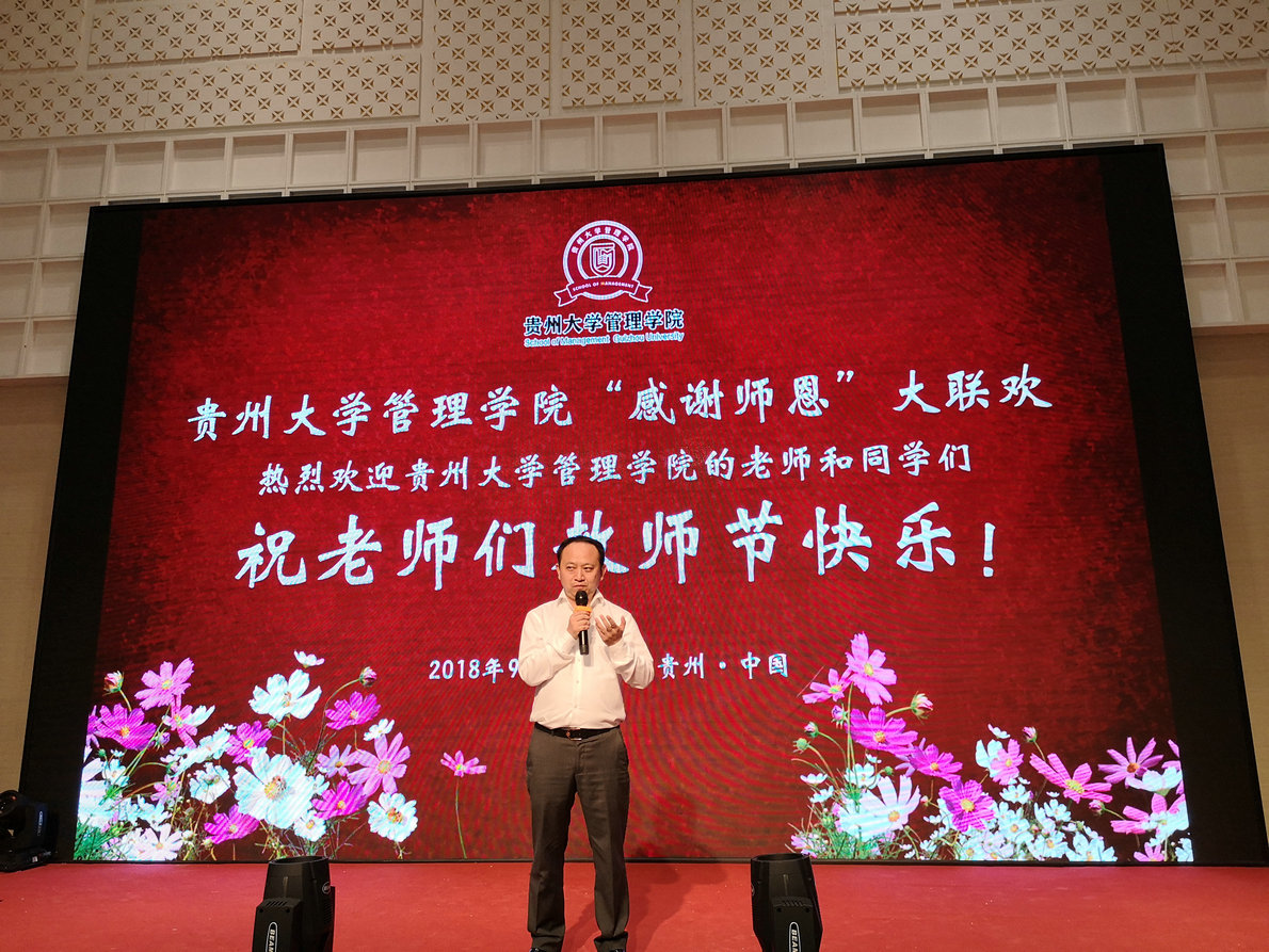 9月10日下午,乐动官方网站校友会大型活动“感谢师恩”大联欢在金阳国窖1573举办,本次活动由乐动官方网站主办,贵州大学校友总会管理学院分会承办,同时贵州国际酒类博览会股份有限公司与牟池酒业赞助支持。时值教师节,贵州大学管理学院院长李烨、副院长王婷、周莉莉、宋山梅,院党委副书记张亚军等200余名师生欢聚一堂,在歌声舞语之中,共同庆祝教师节。