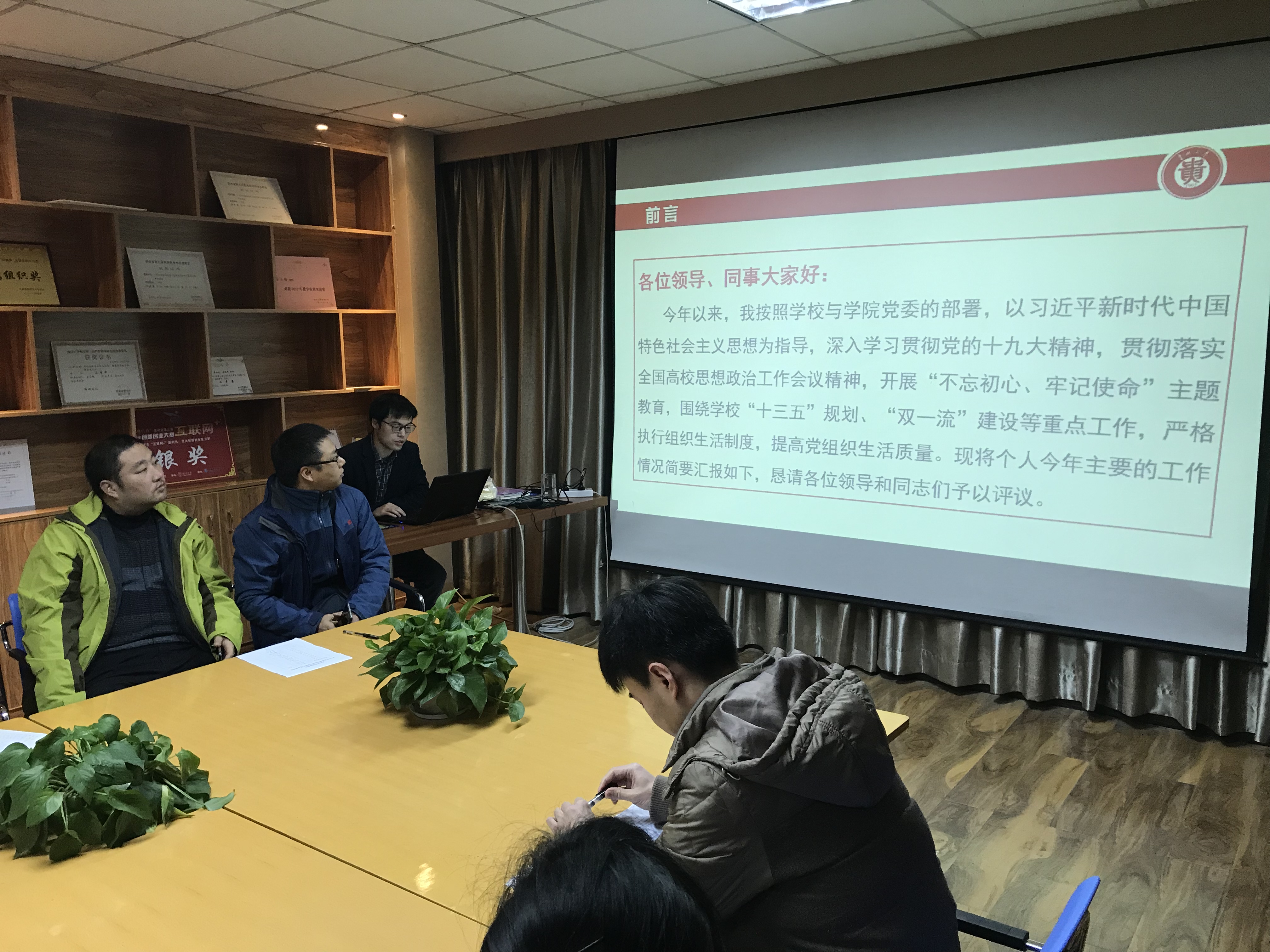 述职会上,李烨院长首先代表学院党委作了2018年度履行党建工作述职报告,李院长从思想建设、组织建设、作风建设、制度建设和反腐倡廉建设等5个方面对学院党建工作任务落实情况进行全面总结,展示了学院2018年党建工作的主要成绩和亮点。