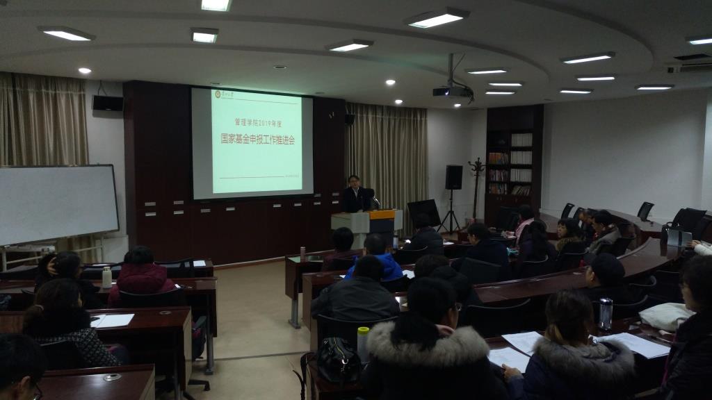 首先由管理学院院长李烨宣布了本次会议的议题及安排。然后由王婷副院长传达了1月4日学校哲社院召开的国家社科基金申报工作推进会的会议精神,并宣布了管理学院本次国家基金申报的工作计划及管理制度。王婷副院长随后介绍了学校和管理学院设立的科研特岗,鼓励在座的各位教师积极申报学校和学院的科研特岗,以及申报学校的学术带头人及学术骨干。