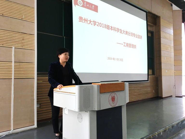 会上,宋山梅副院长介绍了此次参加宣讲会的系主任及老师、工商管理大类各专业情况以及大类分流实施办法。