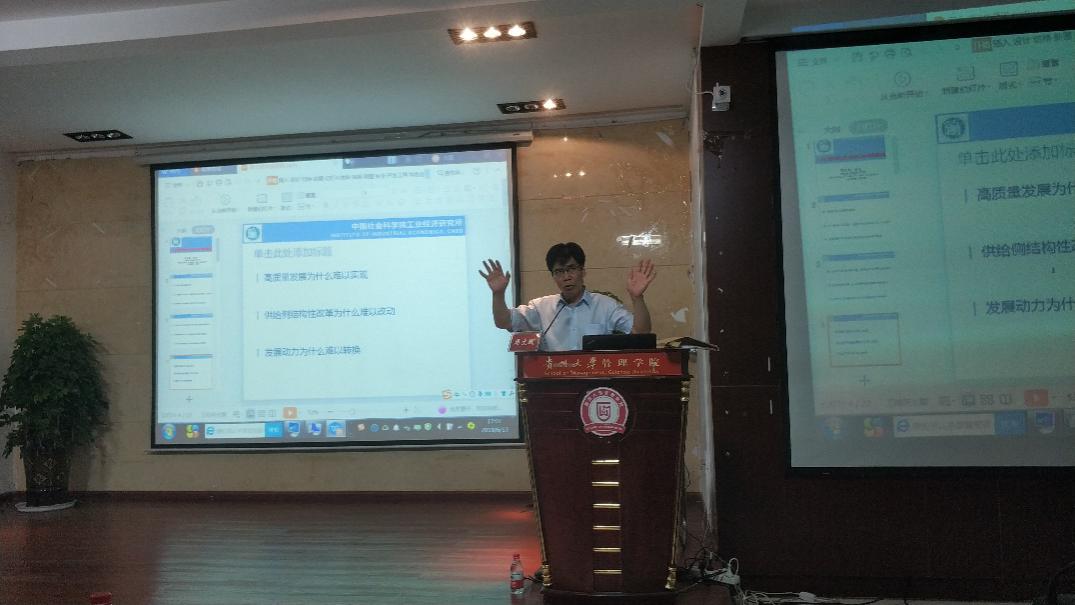 管理学院研究生科讯:应我校管理学院李烨院长邀请,中国企业管理研究会第四届副理事长、《经济管理》杂志社副主编、社长周文斌教授于2019年6月13日16:00在管理学院三楼报告厅做了题为“人力资源红利与新时代贵州高质量发展”的讲座。讲座由管院副院长王婷教授主持,管院全体研究生同学聆听。