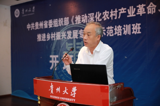 据悉,“推动深化农村产业革命、推进乡村振兴发展专题”示范培训班是为贯彻中共贵州省委组织部关于印发《2018——2022年贵州省干部教育培训规划》中“四项重点工作计划”的通知,实现优化分类分级培训体系,进一步加大干部专业化素质能力培训力度,着力建设定位精准、功能完善、资源丰富、高效运行的干部教育培训保障体系而量身定做的培训项目。本次培训班为期五天,课程包括《贵州主导产业与特色产业培育与发展》、《贵州农村专业合作社如何规范高效发展及其在乡村振兴中发挥引领带动作用》、《精准选择优势产业、深入推进农村产业革命》、《推广“龙头企业+合作社+农户”组织方式,深入推进农村产业革命》、《贵州山地乡村产业振兴:案例、模式与方法》、《农业供给侧改革——浅析供给侧改革在农村产业融合的可行性》、《贵州产业扶贫有机衔接乡村产业兴旺的思路》、《创新驱动与贵州农业产业转型升级发展》。首期学员来自各县(市、区)党政分管领导、相关部门负责人。