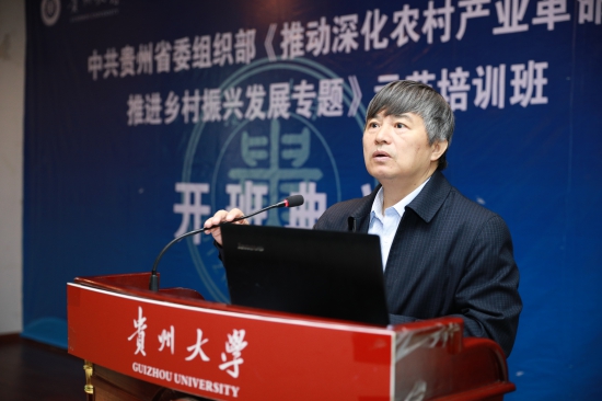 据悉,“推动深化农村产业革命、推进乡村振兴发展专题”示范培训班是为贯彻中共贵州省委组织部关于印发《2018——2022年贵州省干部教育培训规划》中“四项重点工作计划”的通知,实现优化分类分级培训体系,进一步加大干部专业化素质能力培训力度,着力建设定位精准、功能完善、资源丰富、高效运行的干部教育培训保障体系而量身定做的培训项目。本次培训班为期五天,课程包括《贵州主导产业与特色产业培育与发展》、《贵州农村专业合作社如何规范高效发展及其在乡村振兴中发挥引领带动作用》、《精准选择优势产业、深入推进农村产业革命》、《推广“龙头企业+合作社+农户”组织方式,深入推进农村产业革命》、《贵州山地乡村产业振兴:案例、模式与方法》、《农业供给侧改革——浅析供给侧改革在农村产业融合的可行性》、《贵州产业扶贫有机衔接乡村产业兴旺的思路》、《创新驱动与贵州农业产业转型升级发展》。首期学员来自各县(市、区)党政分管领导、相关部门负责人。