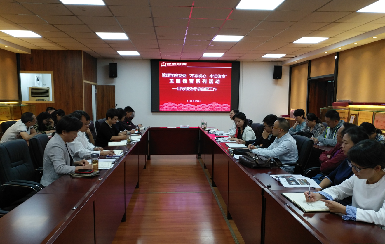 2019年9月29日上午11:00,管理学院在致远楼三楼陈列室召开目标绩效考核自查工作会,学院党政领导班子、各科室(中心)负责人、系主任、党支部书记等中层干部参加会议。会议由学院党委副书记、院长李烨主持。