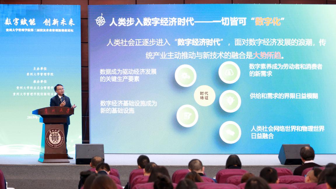 2019年11月23日,由乐动官方网站主办,贵州大学校友总会管理学院分会、乐动官方网站创新创业教育中心承办的第三届校友企业家创新创业论坛在贵州大学北区行政楼举办。此次会议的主题为“数字赋能,创新未来”,省内外专家学者、乐动官方网站领导、教师代表以及来自乐动官方网站EMBA、MBA、EDP、普研、本科生校友企业家代表和省市新闻媒体300余人参加了本次论坛。