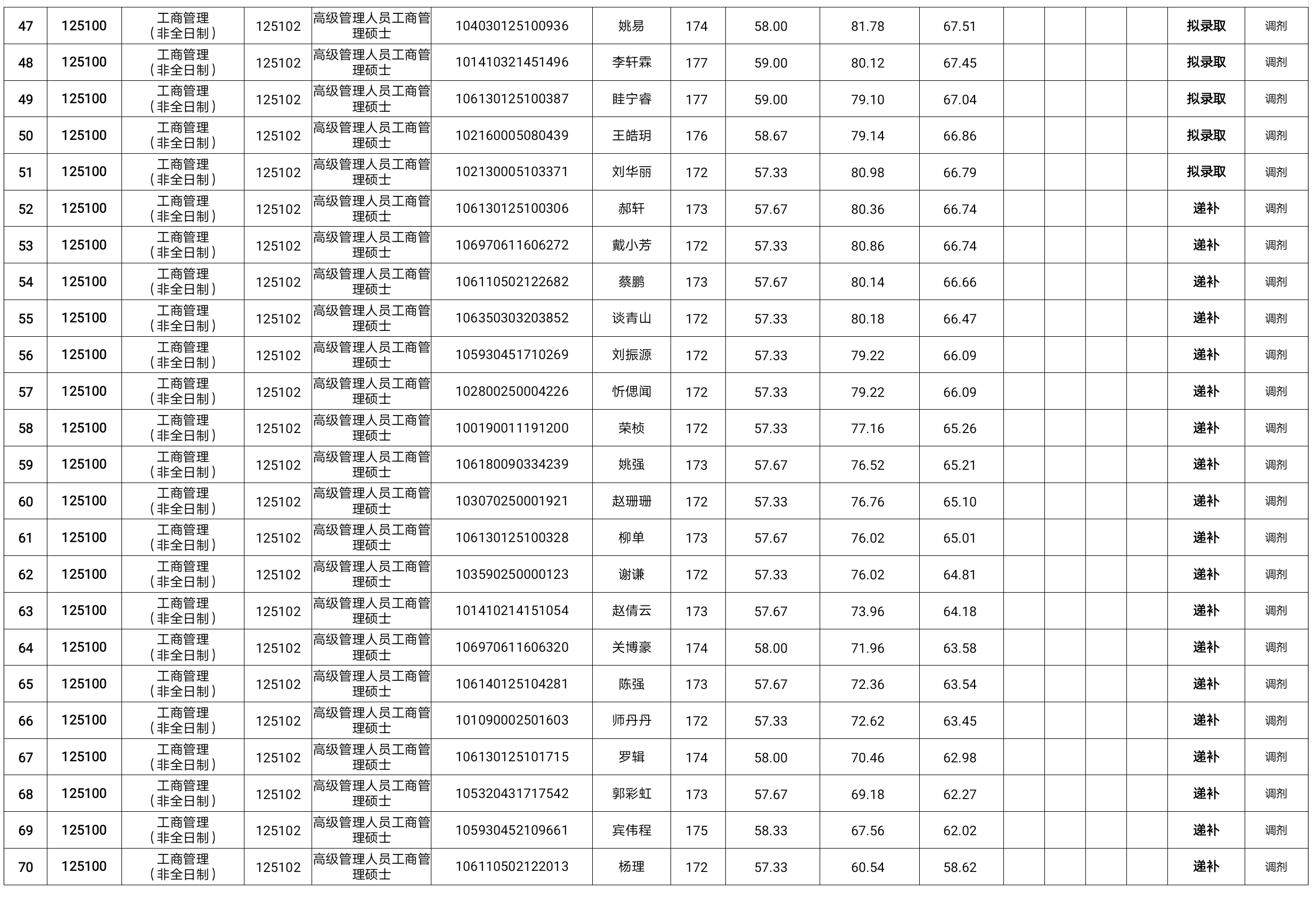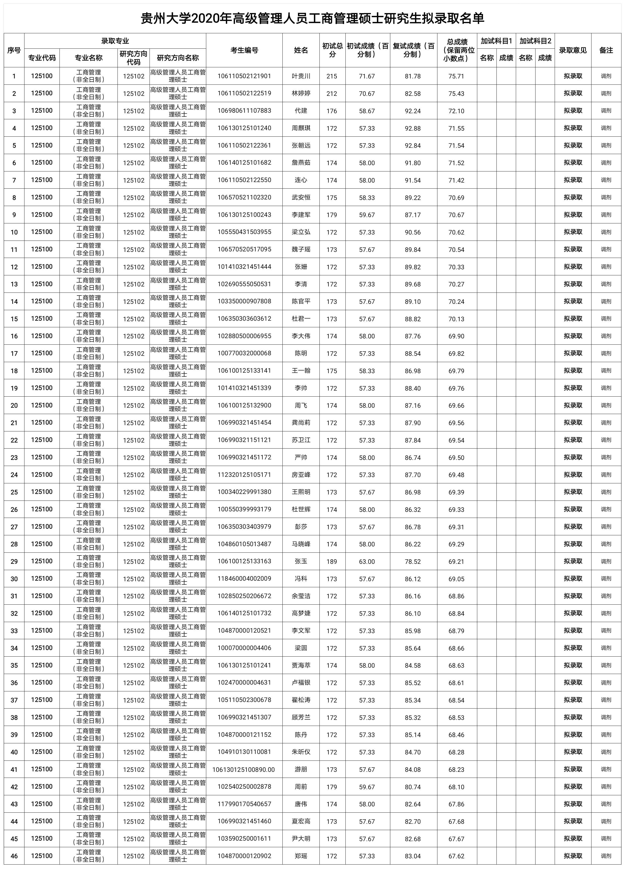 贵州大学2020年高级管理人员工商管理硕士研究生拟录取名单