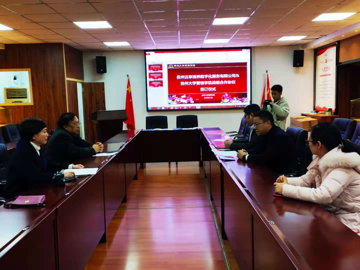 为丰富管理学院学生实践基地资源,促进产学研相结合,强化大学生实践能力, 2020年11月30日,管理学院与贵州云享视界数字化服务有限公司签订了校企合作框架协议及共建教学实践基地协议,同时举行了实践基地授牌仪式,乐动官方网站党委书记王秀峰、副院长宋山梅、营销电商系支部书记任卓异、对外合作办公室主任王云出席仪式,仪式由副院长宋山梅主持。