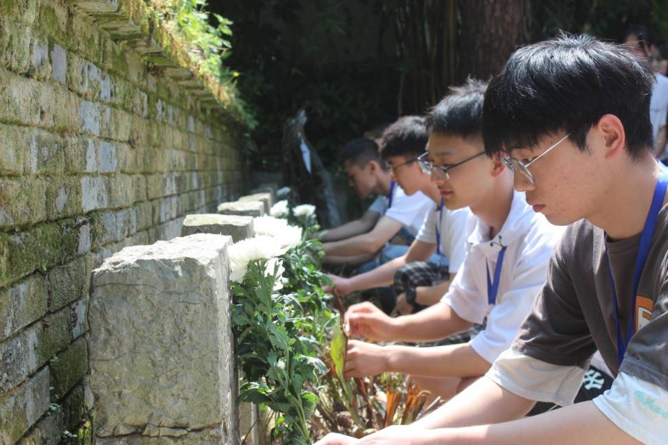 随后,与会人员进行祭扫活动,仿佛在推开那段历史的窗口,与身边的“七女”做着跨越时代的问候与互动。清扫完毕,全体同学向“七女坟”献花致意、默哀行礼。青山不再语,松涛不再滚,时间也静默于对英烈的悼亡,每位同学都在寄托着对英烈的悠长哀思。今日的双手虽再也揩拭不去历史的泪痕,但今人的双肩却在努力扛起时代的使命。