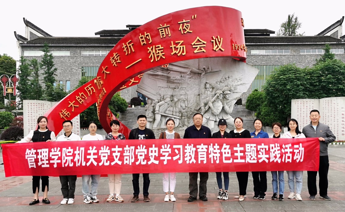 参观人员先后来到猴场会议纪念馆、猴场会议会址开展党史学习教育。在讲解员的带领下,瞻仰了革命烈士使用过的物件、照片、标语等,这些纪实的资料图片仿佛呈现了红军当年的百折不挠、舍生取义、运筹帷幄的画面,无不让我们在场的同志心灵触动,同时也意识到中国共产党的光辉历程。在猴场会议会址参观时,管理学院党委副书记洪影秋同志带领大家重温入党誓词,让支部党员同志达到学史明理、学史增信、学史崇德、学史力行的目的。