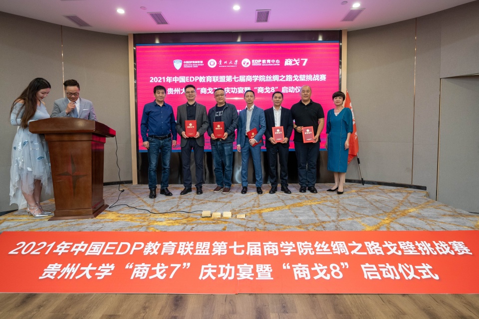 最后,在全体成员的见证下,“商戈8”启动仪式由中国EDP联盟副主席、贵州大学EDP教育中心主任张勇为代表开启,“商戈7”队员何波作为“商戈8贵州大学战队主席接旗