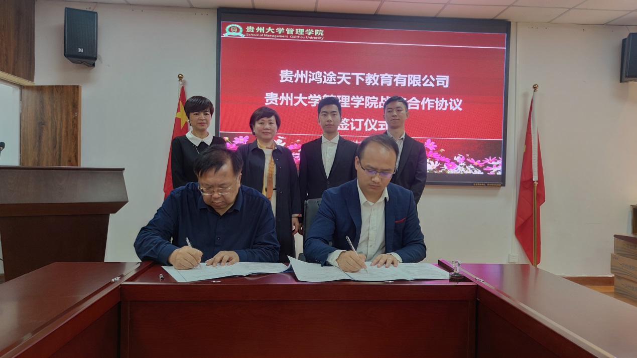 为丰富管理学院学生实践基地资源,促进产学研相结合,强化大学生实践及创新能力, 2021528日,管理学院与贵州鸿途天下有限公司签订校企合作框架协议及共建教学实践基地协议,同时举行了实践基地授牌仪式。管理学院党委书记王秀峰、副院长宋山梅、对外合作办公室主任王云出席仪式,仪式由副院长宋山梅主持。