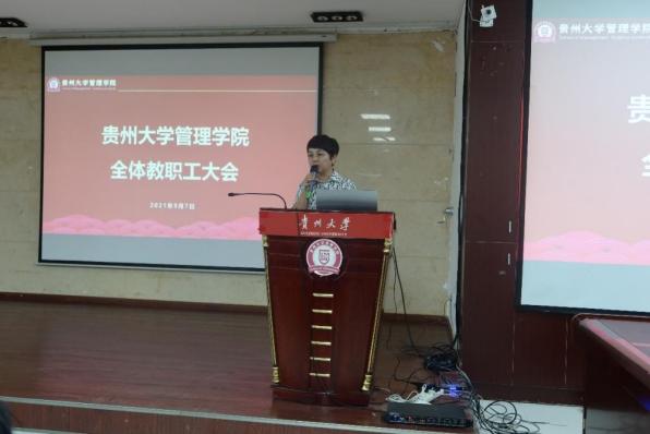 会上,院党委书记王秀峰传达了习近平总书记七一重要讲话精神省委副书记、省长李炳军在贵州大学调研指示精神,以及贵州大学2021年秋季学期开学工作会暨高质量发展工作推进会议精神,并就上学期工作作简要总结、研究部署新学期相关工作。他指出,学习贯彻党的重要理论精神,是当前和今后时期的重大政治任务,我们要切实提高政治站位,做到在工作中自主学、自觉学、自愿学,将理论与实践相结合,高站位、高标准、高质量、高效率推进党史理论学习教育各项任务落到实处、细处、深处。他强调,贵州大学作为贵州一流高校,师生作为贵州区域乡村振兴工作先锋队队员管理学院作为管理型人才培养基地,要充分扎根贵州大地、利用专业优势,在科教文卫和农林牧渔中主动建言献策,发挥示范引领作用,勇担贵州人民生活水平日益提高的助推器责任他希望,全院教职工再接再厉,在新学期继续将学科和产业深度融合,给产业镀金,将学科落实,把乡村振兴事业牢记在心真正为学校“部省”合建和双一流建设添砖加瓦,为开创百姓富生态美多彩贵州新未来注入源源不断的动力
