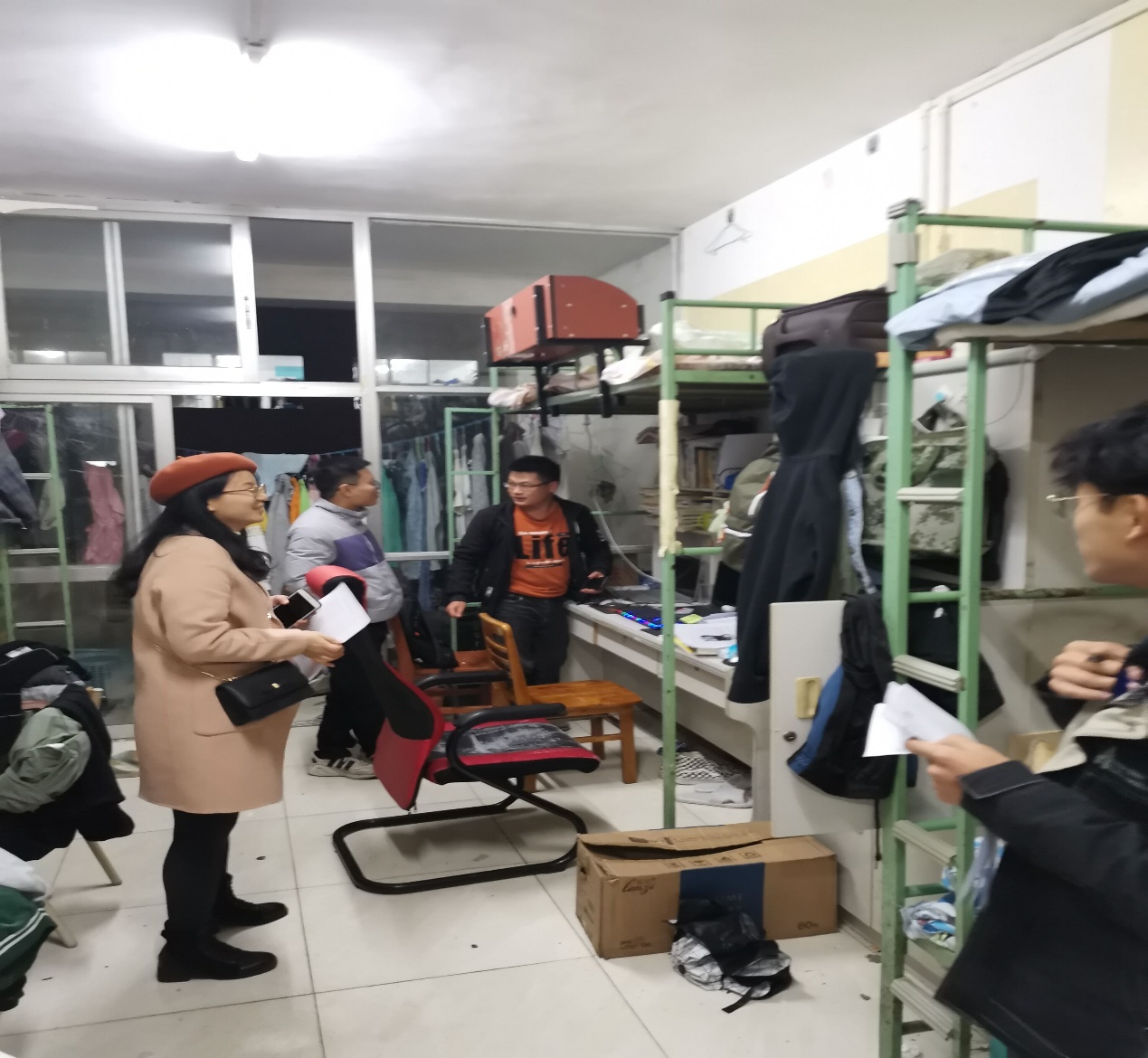 根据《关于开展冬季学生宿舍安全检查的通知》要求,学院高度重视,认真落实工作。2021118日晚上19点,在管理学院党委副书记洪影秋的带领下,学生科科长芮丽华,学生科辅导员向珂莹、车婧娴、陈黔江与我院团委、学生会学生干部分组对东校区1479四栋学生公寓中管理学院学生所在寝室进行全面检查。本次宿舍检查主要围绕学生宿舍是否有乱拉电源、使用违禁物品、寝室内务等问题展开。目的是让同学们能够保持干净整洁的宿舍环境,并积极响应学校号召,做到人走断电,消除可能引发宿舍危险的各种隐患。