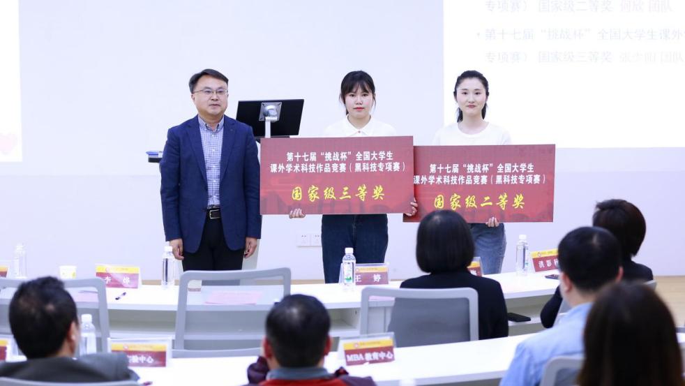 本次大会以鼓舞先进、树立典型、鼓舞士气为目的,分别表彰了“国赛获奖团队”、“省赛获奖团队”、“优秀指导教师”等团队和个人。随后播放了第十八届“挑战杯”贵州大学邀请视频。