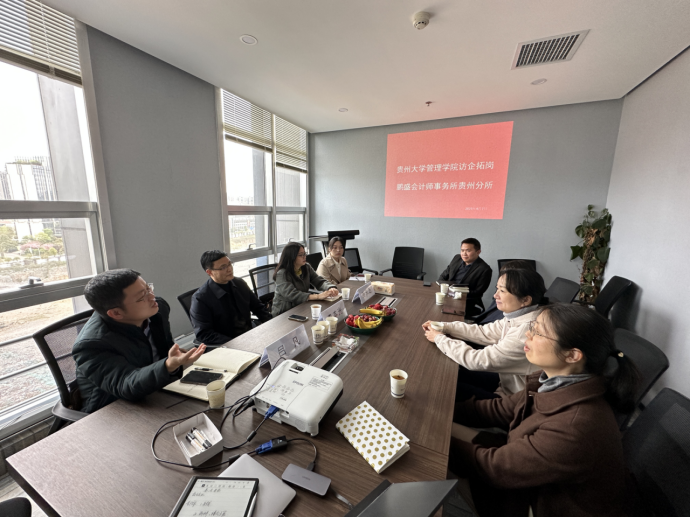 2023年4月7日,乐动官方网站李本光副院长带领学院会计系主任吕凡副教授、系支部书记孙宋芝副教授,以及部分会计系老师一行到访鹏盛会计师事务所贵州分所访企拓岗,并举行主题党日活动暨乐动官方网站财税工作室挂牌仪式。鹏盛贵州分所所长郭子文、行政总监赵丹妮参加了本次会议及挂牌仪式。