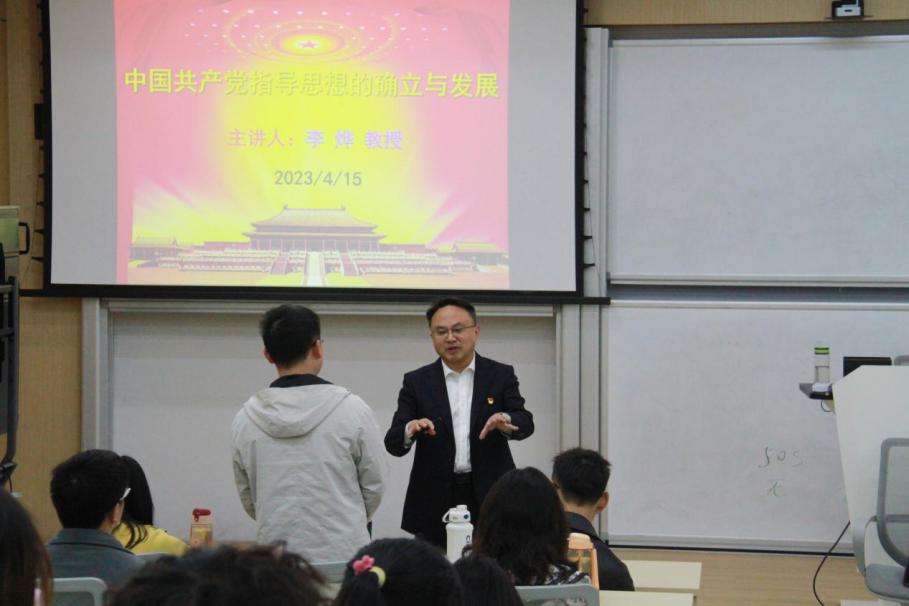 2023415日上午800, 乐动官方网站院长李烨教授在管理学院102教室为学院第三十八期入党积极分子培训班授课,课程主要围绕“中国共产党指导思想的确立与发展”展开。