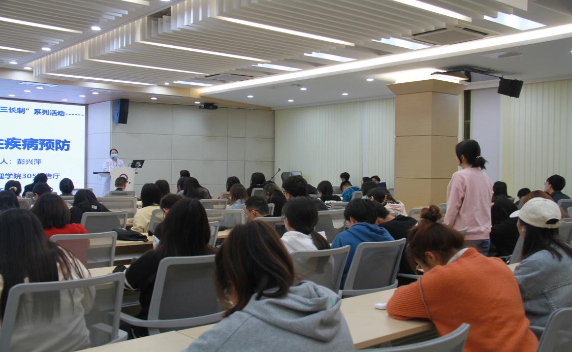 彭医生就春季多发性流行性传染疾病的含义、种类、特点及其预防方法等方面向同学们讲解了相关流行性疾病预防知识。从其讲解过程中,同学们了解到流行性疾病传染性具有发病急,发病重,后果严重等特点。同时也认识到传染性疾病发生需具备的三个要素:传染源,传播途径和易感人群。