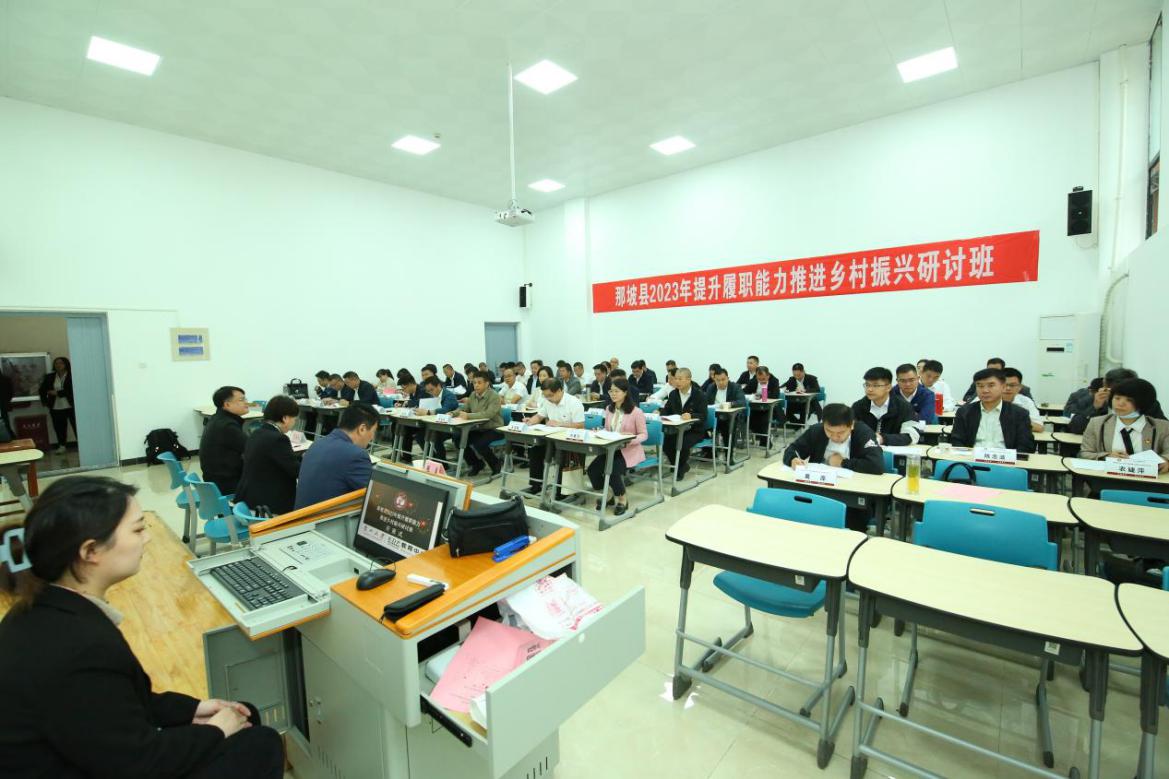 2023年5月8日上午,由中共那坡县委组织部主办,贵州大学承办的广西壮族自治区那坡县2023年提升履职能力推进乡村振兴研讨班开班仪式在贵州大学西校区烟草学院108教室顺利举行。来自广西壮族自治区那坡县各乡(镇)党委书记、人大主席、县农村工作(乡村振兴)领导小组成员单位主要领导、分管领导共计63人开始接受为期5天的培训。
