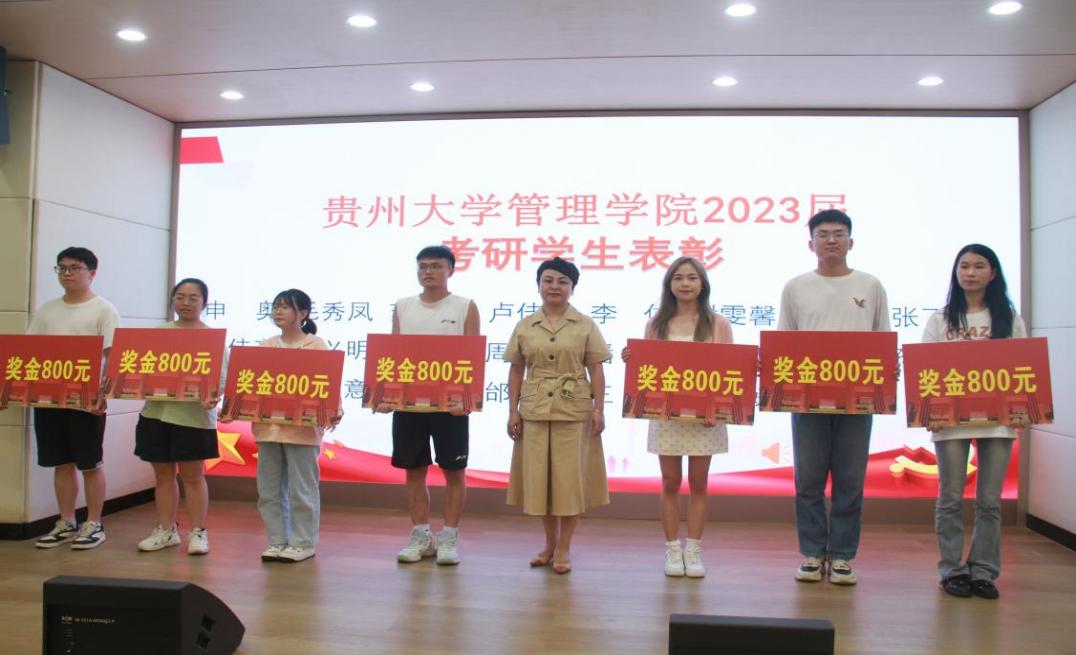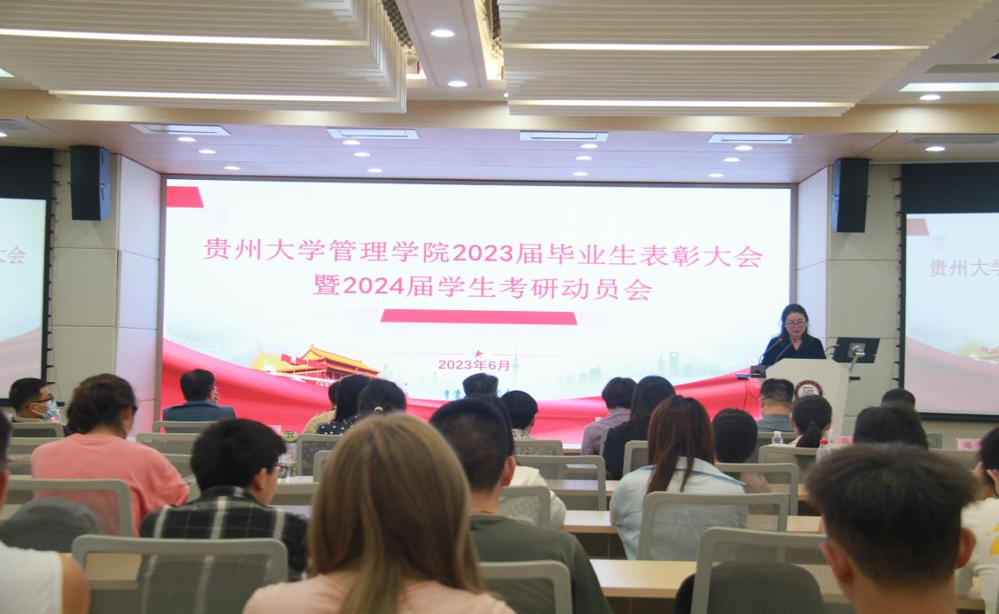 贵州大学党委委员、管理学院院长李烨致辞,李烨院长向2023届毕业生中考研表现突出的学生、保研学生、考博学生表示最热烈的祝贺。