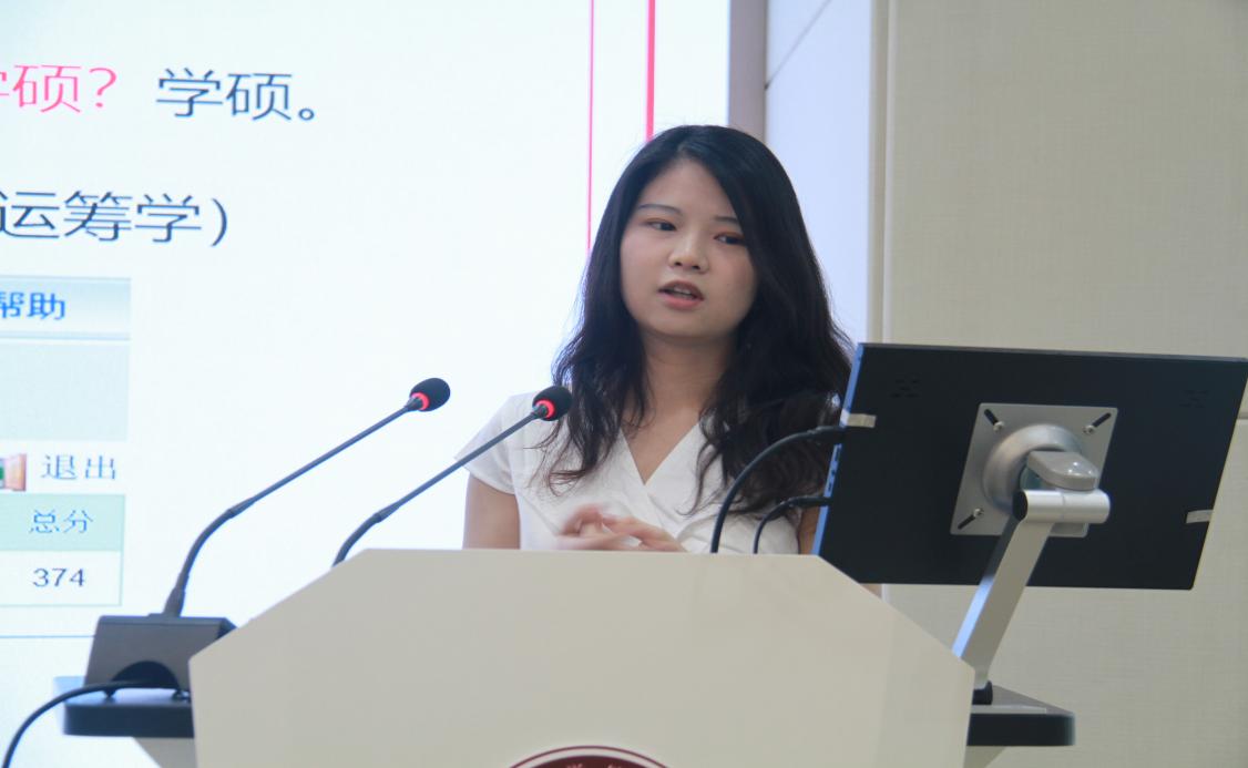随后,考研学生代表申奥、保研学生代表邢佳丽、考博学生代表莫姝做经验分享交流发言。