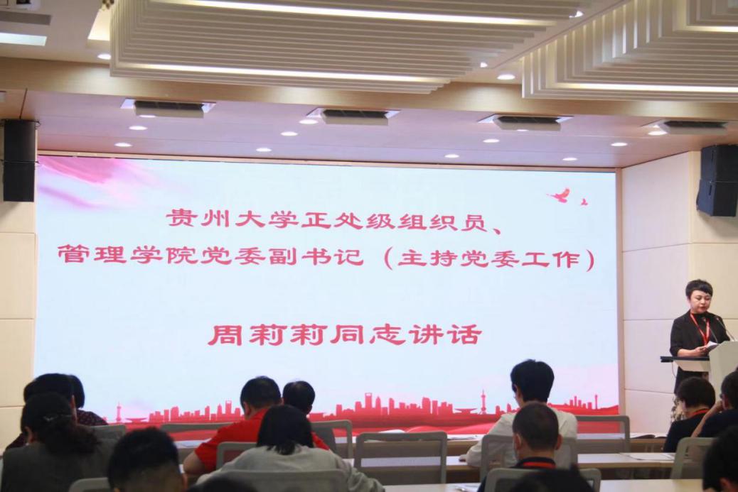 最后,贵州大学正处级组织员、管理学院党委副书记(主持党委工作)周莉莉讲话,她对本次会议的成功召开表示热烈祝贺,向全体与会代表、工作人员和辛勤工作在教学、科研、管理服务一线的全体教职员工表示衷心的感谢和崇高的敬意!她提出,本次“两代会”凝聚了人心、振奋了精神、鼓舞了士气、擘画了蓝图,会后,学院将对大家提出的意见和建议进行认真梳理、研究,提出切实可行的落实措施。同时。我们要以本次“两代会”精神为动力,做好党建引领,坚持以立德树人为根本,以服务发展为宗旨,以促进就业为导向,在党建工作、人才培养、科学研究、社会服务、文化传承创新、国际交流合作等方面再上新台阶。全体教职员工要坚定发展信心,以脚踏实地、真抓实干的精气神和求真务实的工作作风,在学院建设上做出新成效,创造经得起实践和历史检验的优异成绩。全力推进学院高质量发展,努力培养更多德智体美劳全面发展的社会主义建设者和接班人,办好人民满意的教育。