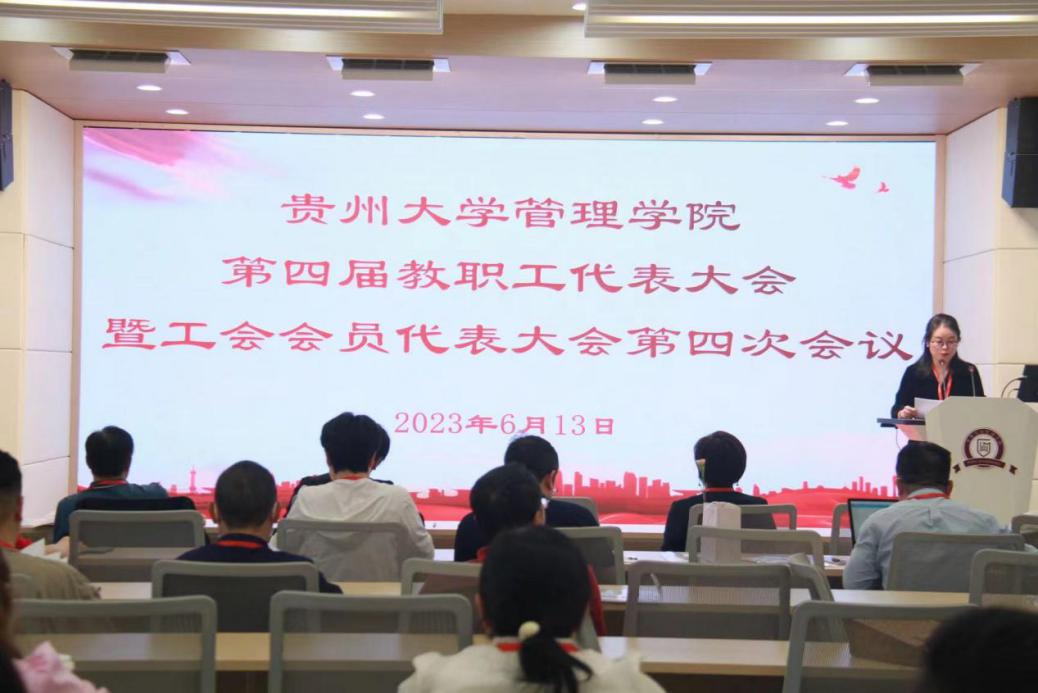2023年6月13日下午,管理学院在致远楼三楼报告厅组织召开了第四届教职工代表大会暨工会会员代表大会第四次会议,管理学院党政领导班子出席会议,各教职工代表参加会议。会议由学院党委副书记邓琳主持。