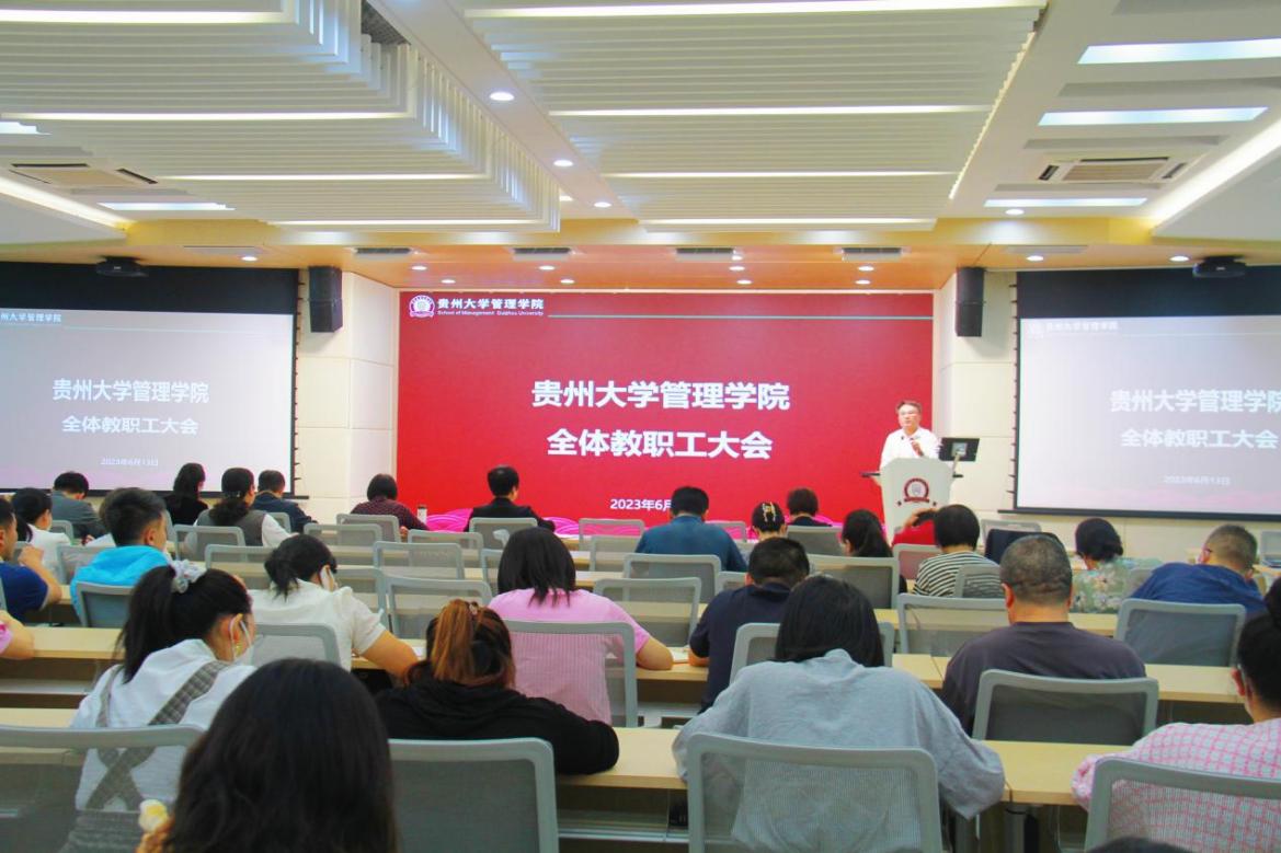 2023年6月13日中午,管理学院在致远楼三楼报告厅组织召开全体教职工大会暨政治学习。管理学院领导班子出席会议,全体教职工参加会议。会议由管理学院院长李烨主持。