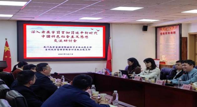 厦门大学财务学系主任吴育辉老师对财务学系情况作了介绍,并表示愿意和乐动官方网站会计系保持长期合作与交流。之后,厦门大学财务学系支部书记王艳艳老师表示,在习近平新时代中国特色社会主义思想引领下,党建促发展,财务学系在教学、科研方面得到了不错的发展,十分愿意与贵大管理学院会计系教工党支部保持和加强长期交流合作,多渠道帮助会计系壮大师资力量、提升教学和科研水平,达到双赢的局面。