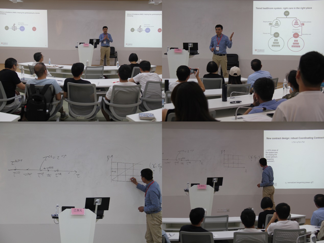 在这次讲座中,江教授分享了医疗服务系统中机制设计的前沿研究。讲座结束后,老师和同学们也针对江厚元教授的讲座内容提出了很多有意义的问题,并与他一起讨论了英国与中国在医疗保健服务领域的异同,江教授向到场的老师和同学们一一解答大家所提出的问题。江教授讲座提供了很多新的视角和思路,现场的掌声此起彼伏,到场的老师和同学们都表示意犹未尽且感受良多、受益颇多。