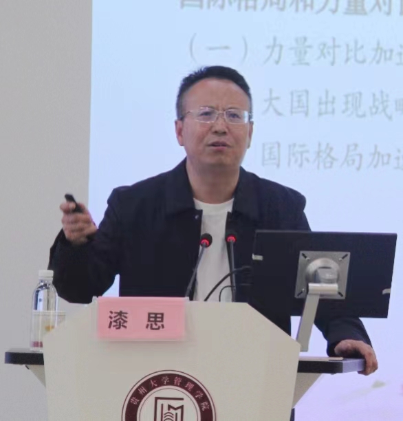 大会第二阶段,贵州大学副校长漆思教授走进管理学院思政课堂,为学院120余名师生讲授题为“共产党人‘心学’:文化传承与创新——不确定性世界变局中的悟性智慧”的思政课。校党委正处级组织员、院党委副书记(主持党委工作)周莉莉主持。