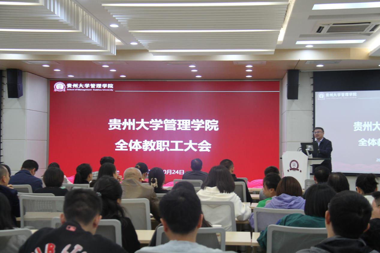 10月24日中午,管理学院在致远楼3楼报告厅组织召开全体教职工大会暨思政课学习。