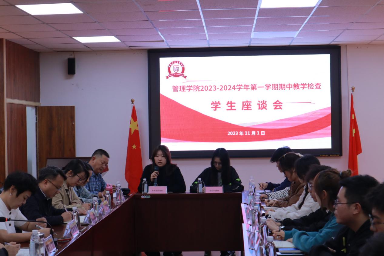2023年11月1日,乐动官方网站在三楼陈列室召开了2023-2024学年第一学期本科期中教学检查学生座谈会。会议由管理学院分管本科教学的李本光副院长(正处级)主持,管理学院院长李烨教授、贵州大学正处级组织员、管理学院党委副书记(主持工作)周莉莉教授、管理学院党委副书记邓琳老师、各系主任、副主任、教学科老师、学生科老师、院督导代表及24名2020级、2021级、2022级学生代表参加了座谈会。