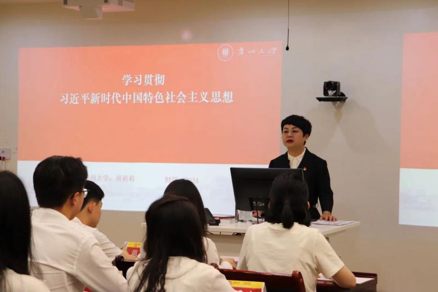 2024年4月27日上午,乐动官方网站分党校第四十期入党积极分子培训班专题党课——习近平新时代中国特色社会主义思想,在管理学院致远楼402教室举行。贵州大学党委正处级组织员、管理学院党委副书记(主持党委工作)周莉莉担任主讲人。
