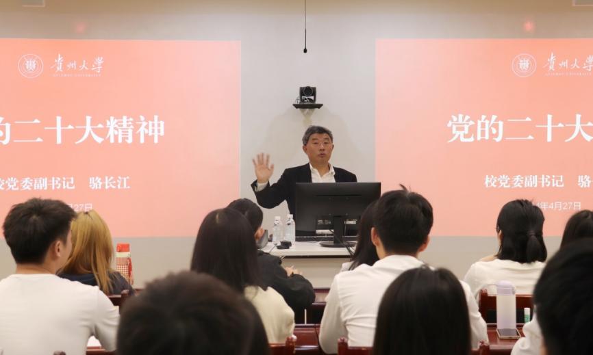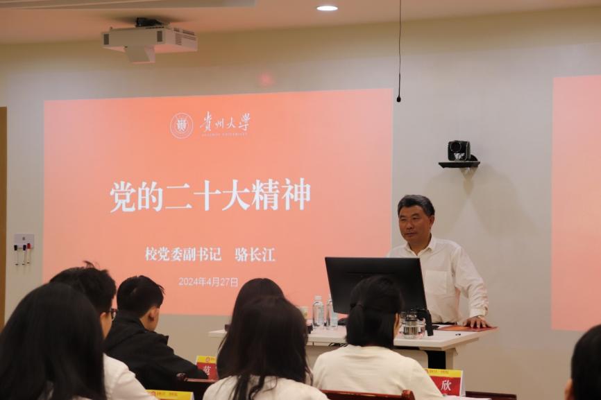 2024427上午,乐动官方网站分党校第四十期入党积极分子专题党课——党的二十大精神,在管理学院致远楼402教室举行。贵州大学党委副书记骆长江担任主讲人。