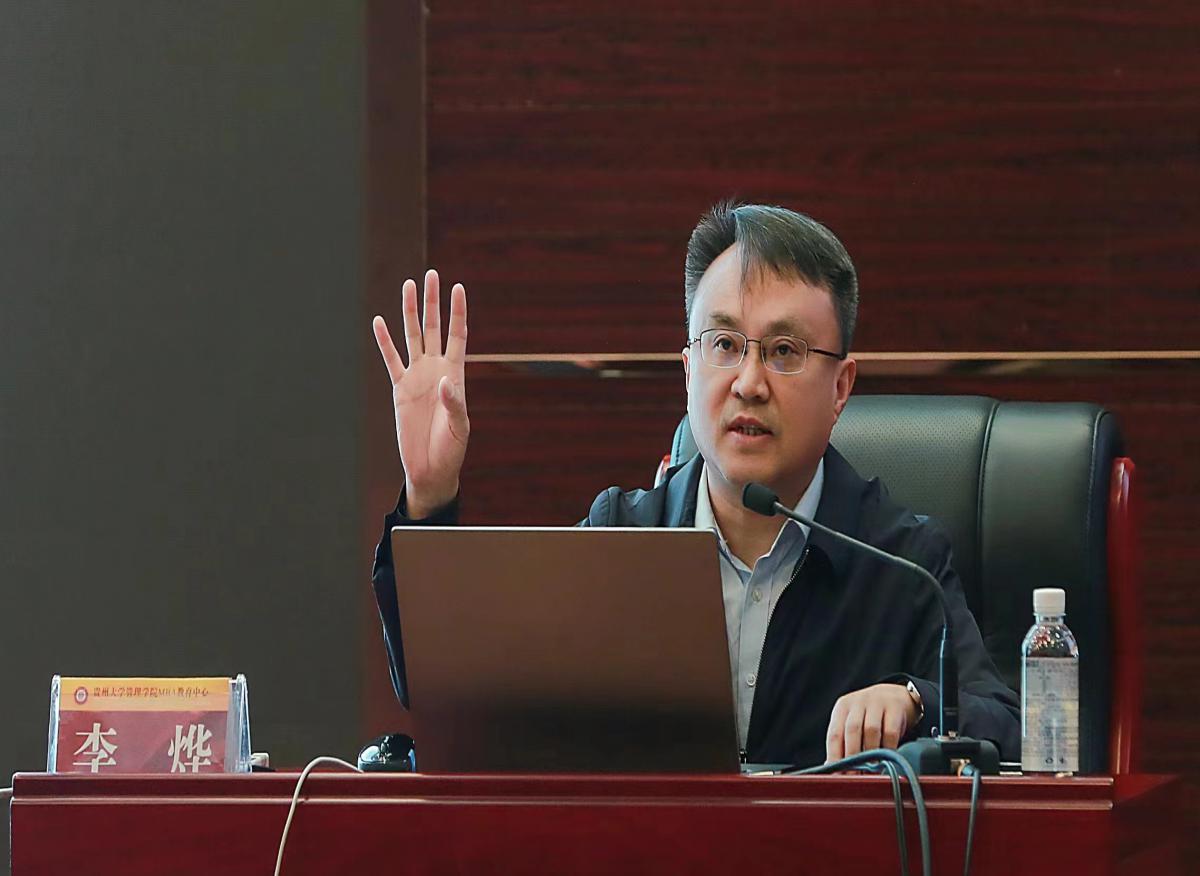 上午8:30—10:20,乐动官方网站院长李烨教授讲授《MBA学位论文写作规范》。李院长首先强调撰写学位论文的重要性和意义,然后就MBA学位论文选题的类型和技巧、开题报告和论文撰写的具体方法步骤以及从开题至申请学位的各个流程做了详细讲解。