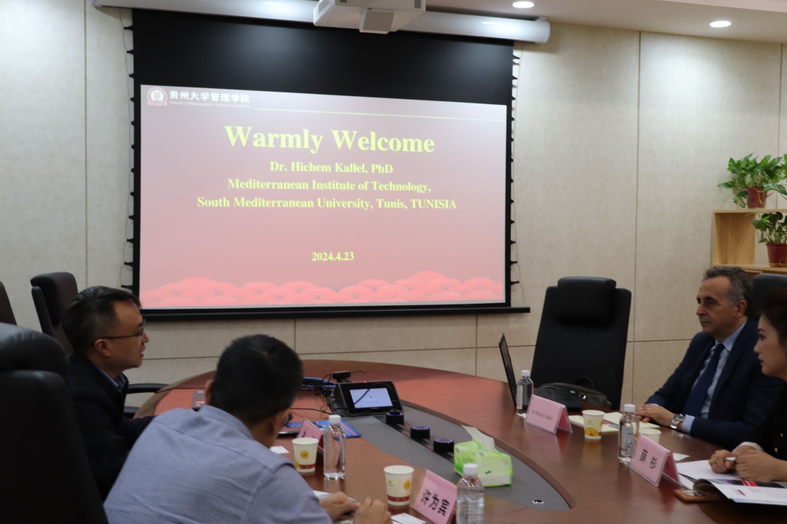 首先,李烨院长向Hichem Kallel教授介绍了乐动官方网站的基本情况。他指出,管理学院高度重视学院的国际化发展,目前学院有专任教师110余人,其中10余人毕业于海外高校。中国的持续发展,特别是当今贵州的快速发展吸引了越来越多的优秀海内外人才加入到乐动官方网站。学院在未来将持续强化推进国际交流与合作工作。