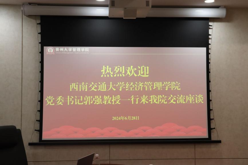李烨院长首先对郭强书记一行的到来表示热烈欢迎,接着以数据为轴,系统勾勒了贵州大学的历史沿革,并就贵州大学发展历程、基本情况等做了介绍,同时对管理学院师资力量、招生人数、专业近况等内容了详尽介绍