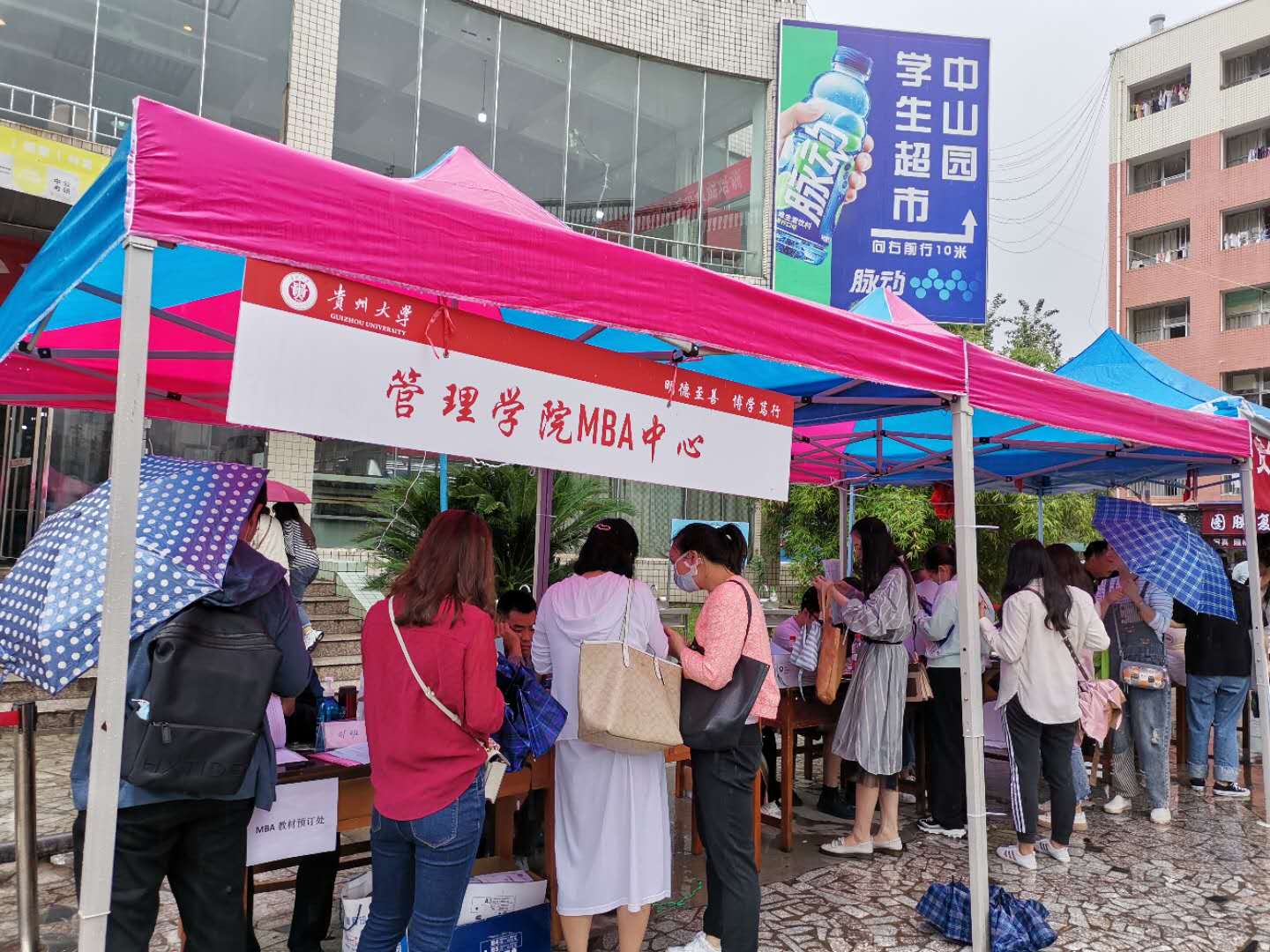 9月11日,乐动官方网站MBA教育中心在贵州大学中山园组织了新生迎接工作。天空一直飘雨,但丝毫没有影响新学员来校报到的热情,当天共迎接2020级MBA新学员300余名。